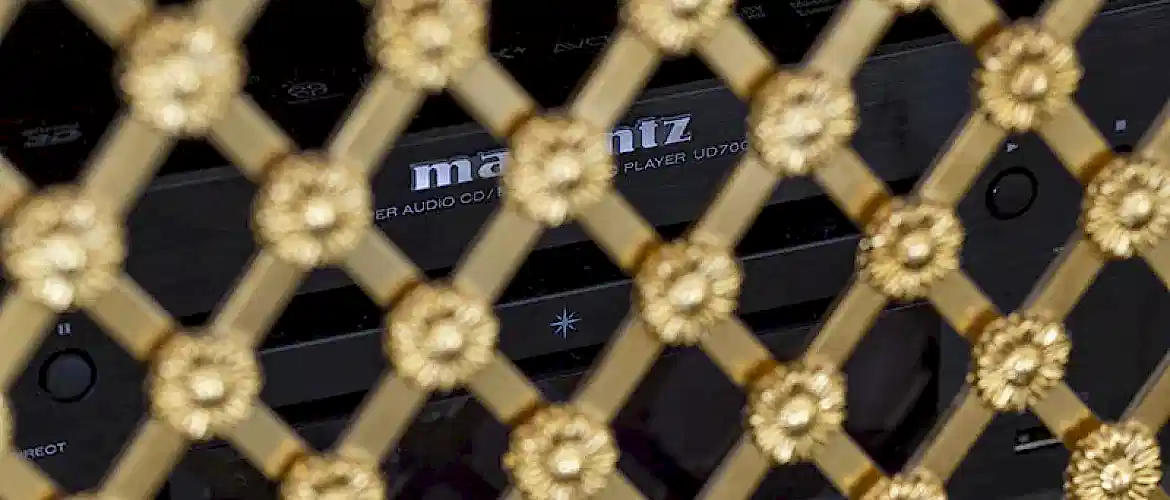 В Pin-Up бросаются ажурные декоративные решетки. Резьба и позолота органично сочетаются с другими элементами интерьера. При этом конструкция не искажает звучание акустических систем и не создает помех для дистанционного управления.