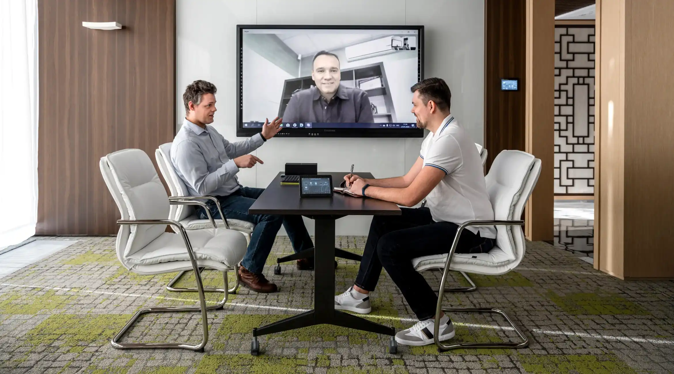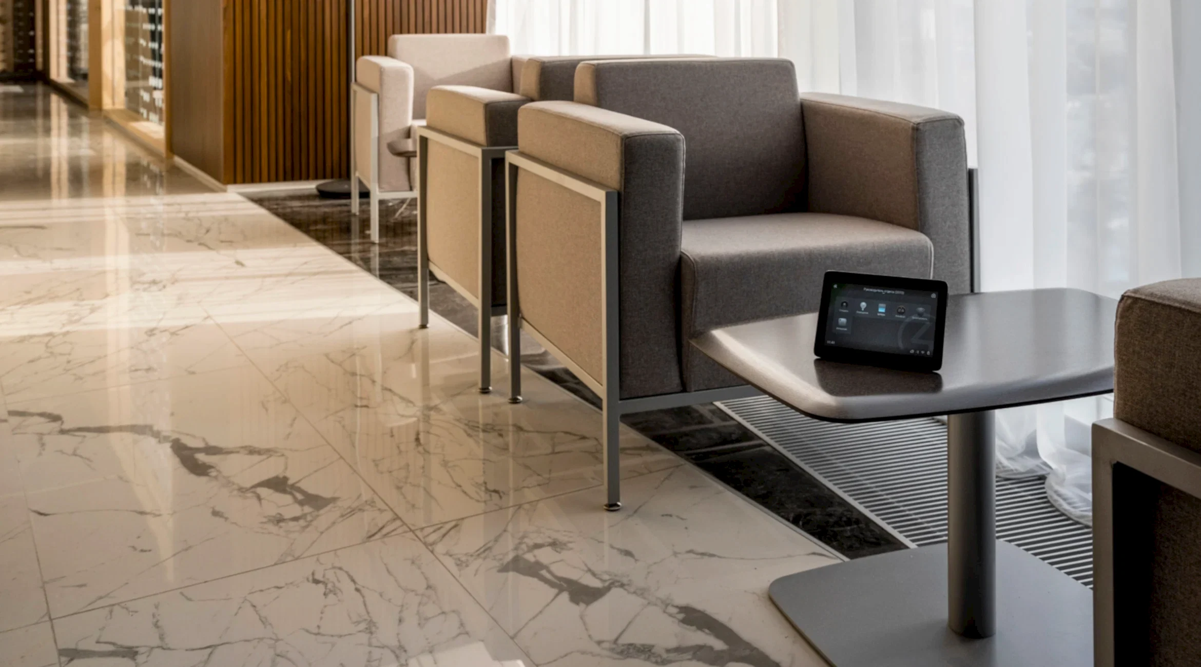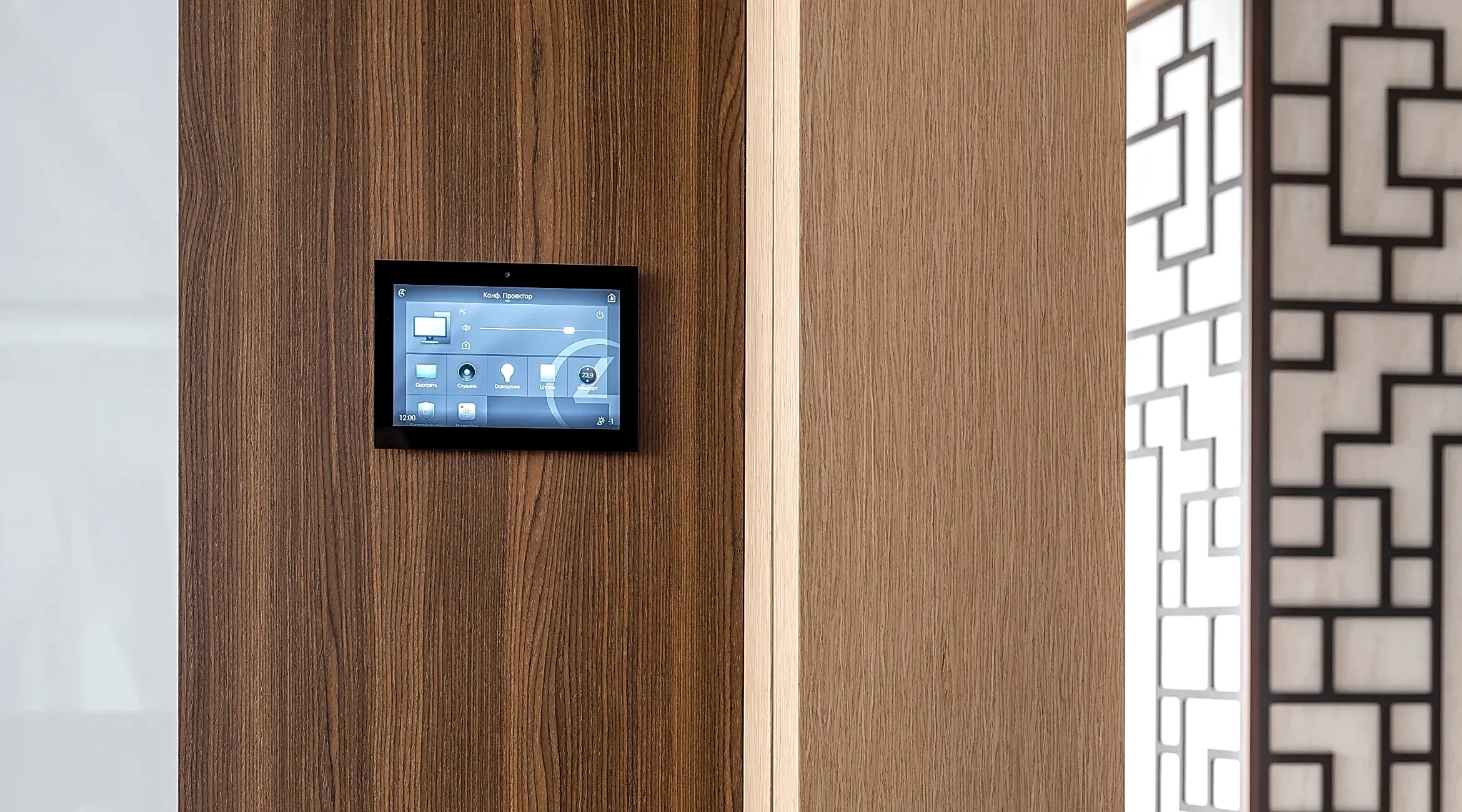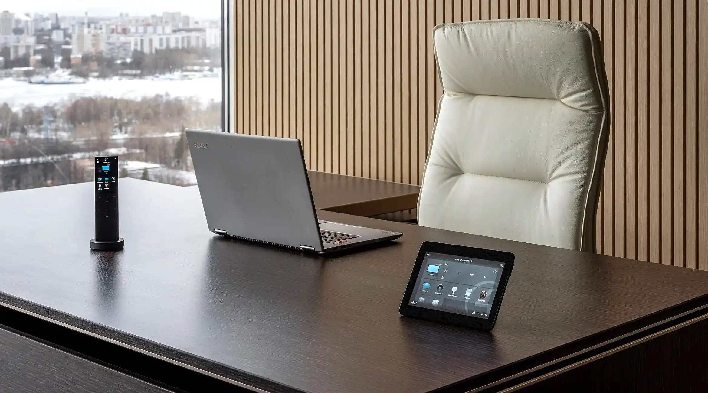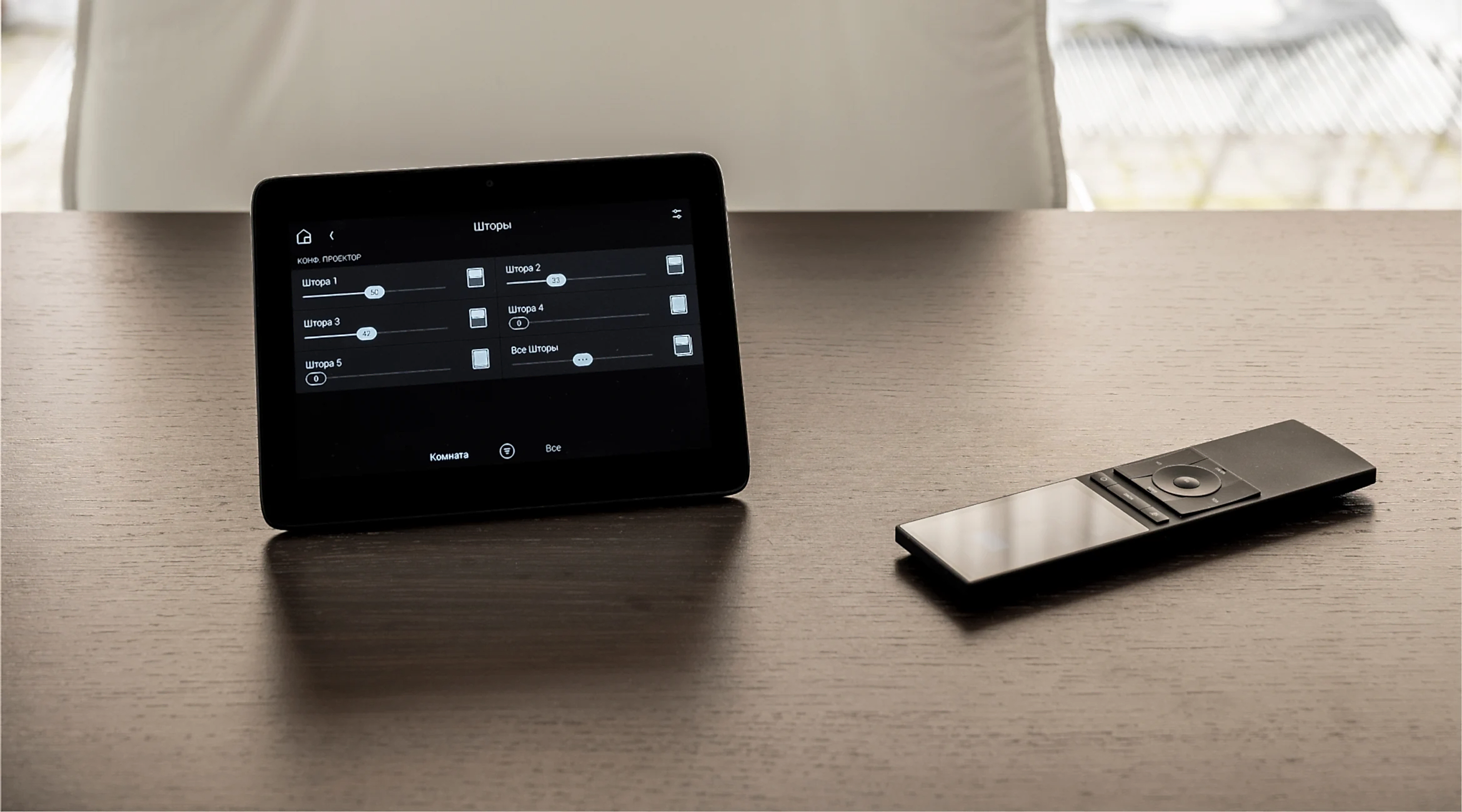 Управляет Умным офисом система Control4. Офис разделен на зоны мультирум: зона, ресепшен, проходная Pin-Up