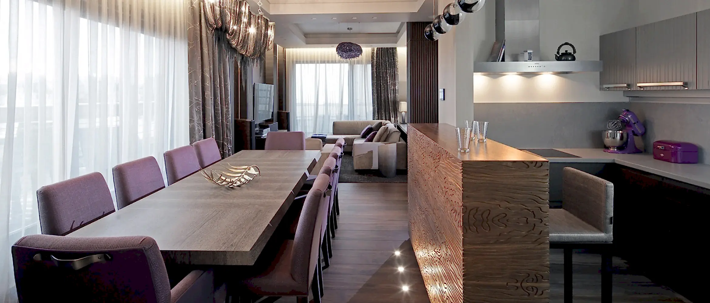 По желанию заказчика мы создали несколько сценариев, как например «Уютный вечер» - включаются камин, негромкая приятная музыка, подсветка картин, оникса и ниш мебели, Pin-Up температура воздуха, и всё это - нажатием одной кнопочки!